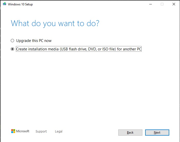 În software-ul deschis, veți găsi opțiune pentru a crea un dispozitiv bootabil pe stick-ul USB conectat.Selectati optiunea 2, "Create installation media (USB flash drive, DVD or ISO file) for another PC
